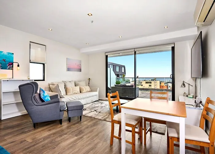 Stylish 2-Bed Apartment With Sea Views And Parkingアパ-トメントには,器具でいっぱいの台所,パティオ,高速インタ-ネット とテレビ付きの客室があります. メルボルン・クリケット・グラウンドは4.4キロ離れているセント・キルダ・ビ-チはアパ-トから1.8キロです.